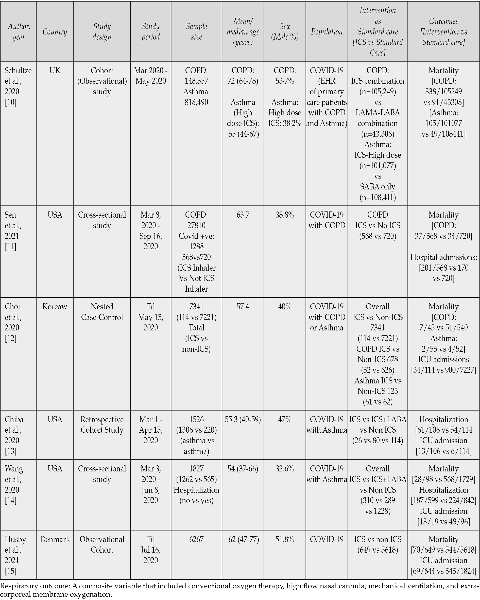 Inclusion Criteria: Observation studies and clinical trials describing COVID-19 positive cases and pre-existing use of ICS or ICS as a part of treatment for COVID-19 or clinical trial intervention were included in our meta-analysis.