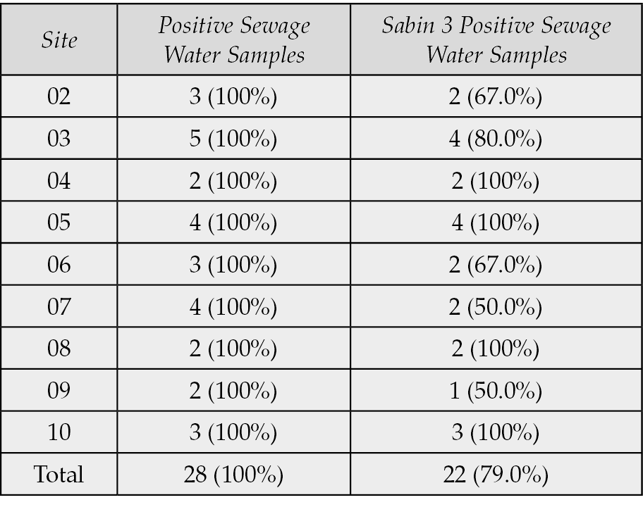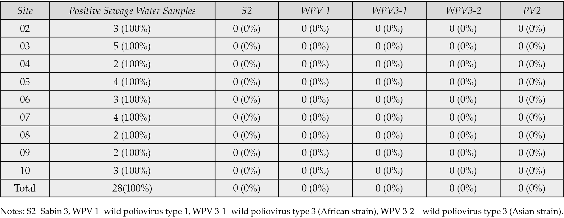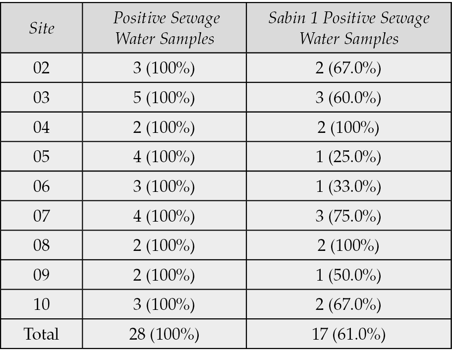 Table 3 - Suspected Sabin 1 Poliovirus obtained after Intratypic Differentiation (ITD) in the Sewage Water Samples.