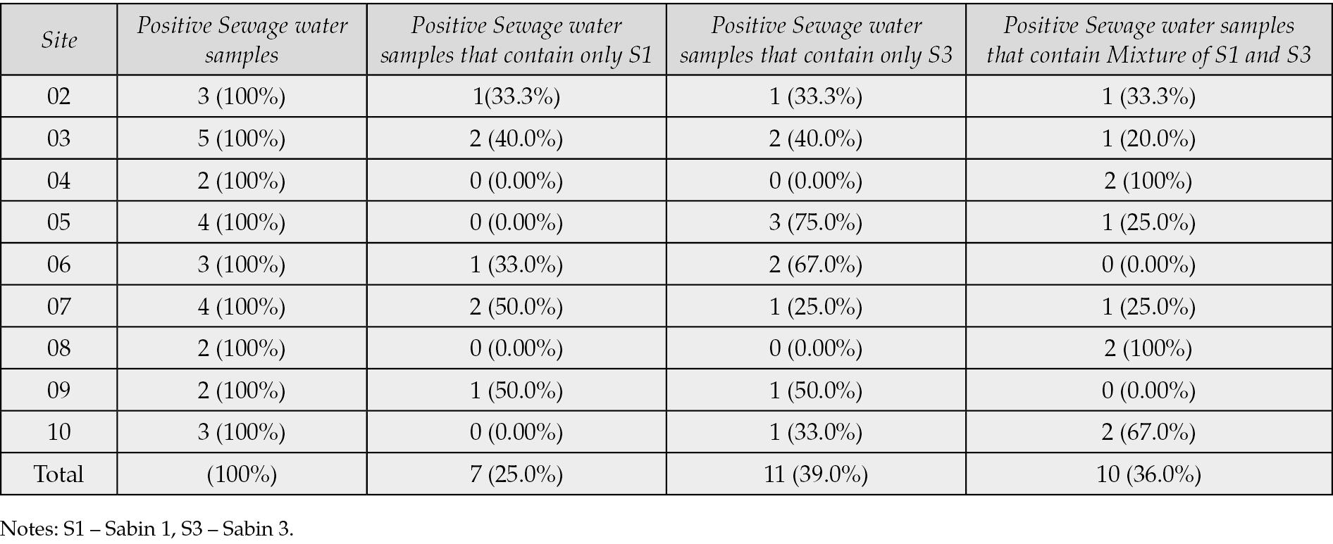 Table 6 - Distribution of Sabin 1 and Sabin 3 Poliovirus in the Positive Sewage Water Samples.