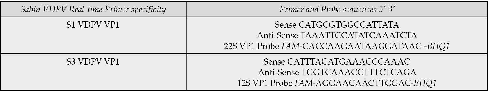 Table 7 - Vaccine derived poliovirus Real- time PCR Primers and Probes Sequences.