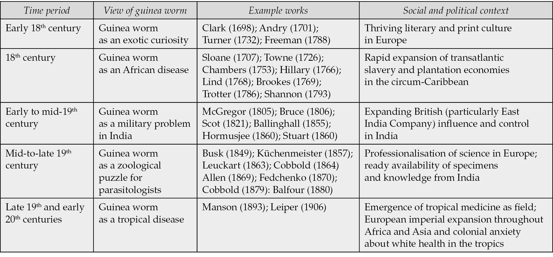 Table 1 - Changing perceptions of guinea worm in English-language texts over time.