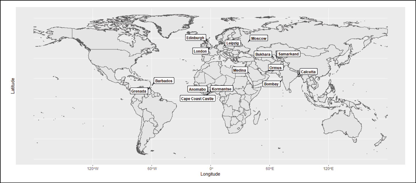 The history of guinea worm science, furthermore, is global, encompassing locations the Caribbean, West Africa, India, and Central Asia (Figure 3). Crucial research was carried out not only in Edinburgh and Leipzig, but also in Samarkand and Calcutta (Kolkata), as knowledge and specimens circulated around the globe.