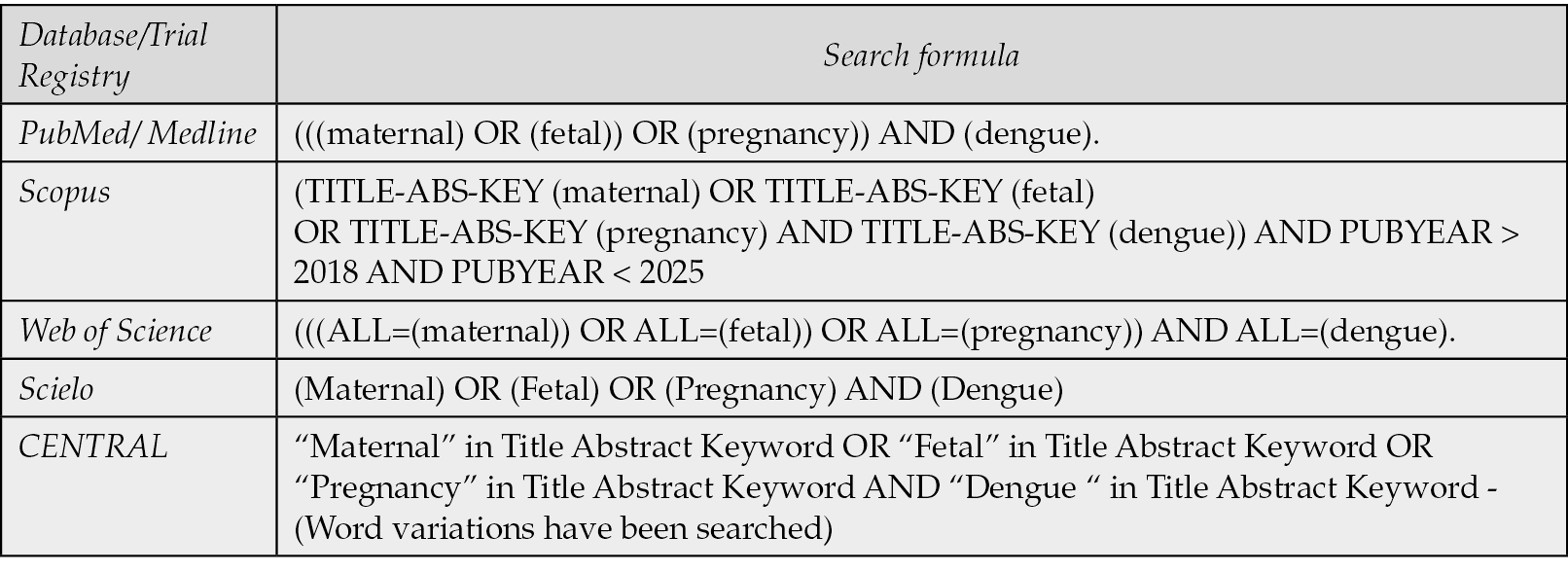 Table 1 - Search formulas in the different databases and clinical trial registries.