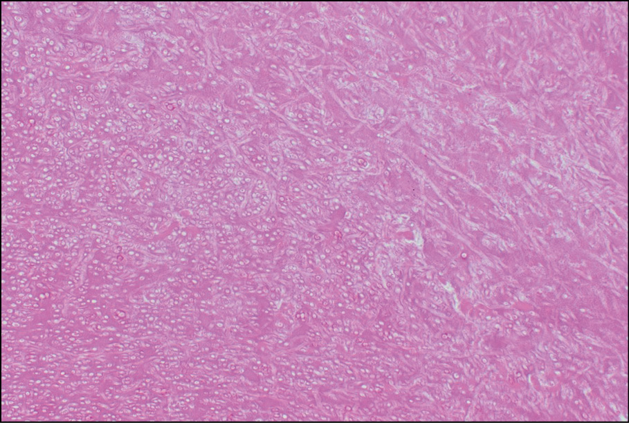 Figure 2 - Hematoxylin and eosin section slide of mitral valve tissue showing acute branching septate hyphae consistent with Aspergillus fumigatus.