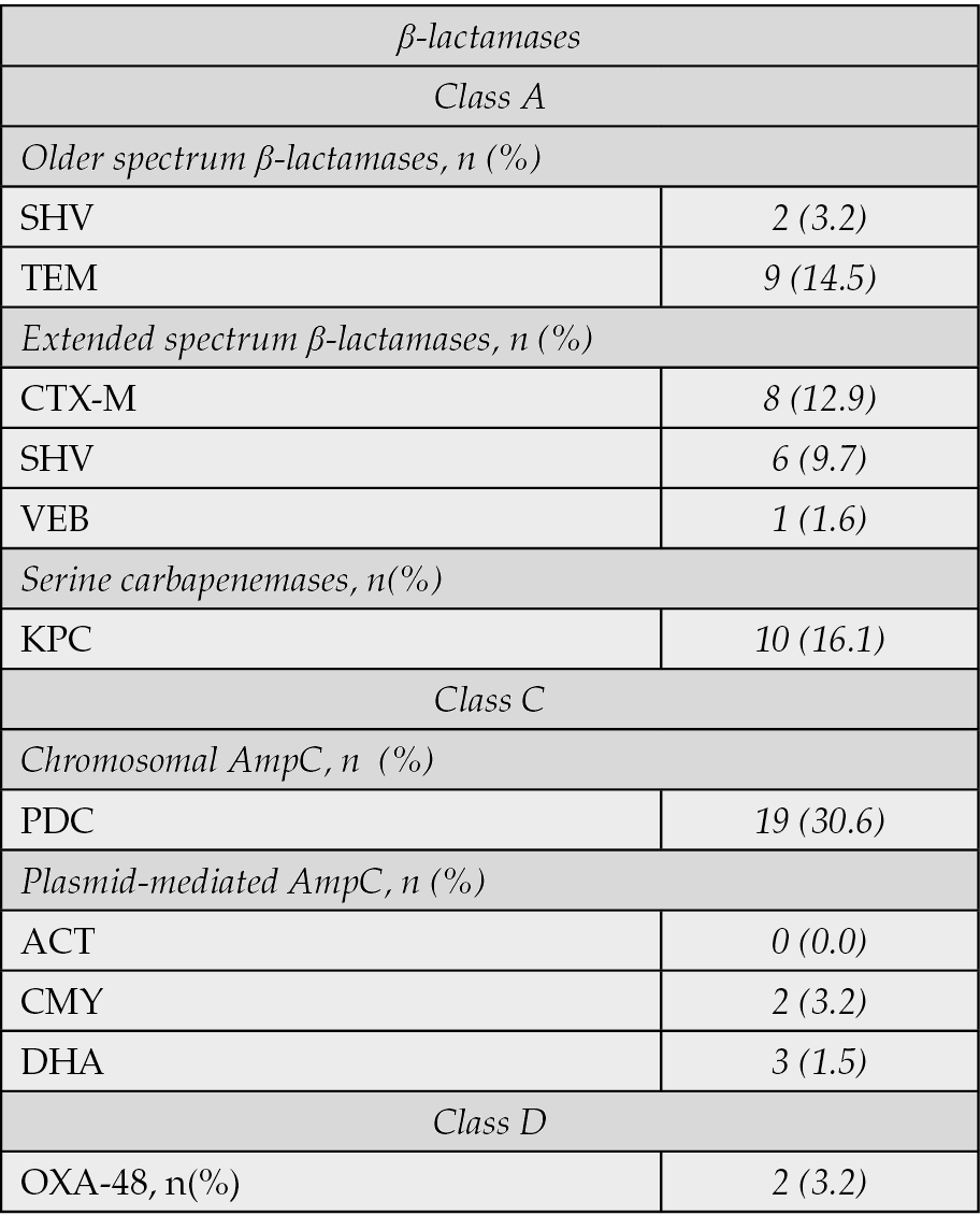 Table 4 - Classification of isolates based on type of β-lactamases (n=62).