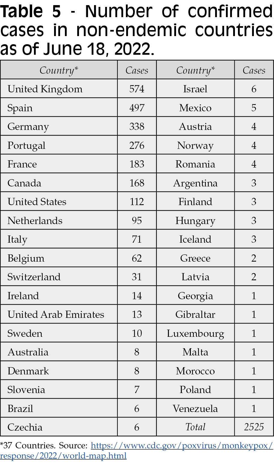 Figure 6 - Geographical distribution of monkeypox cases in 2022, up to June 18, 2022. From: https://ourworldindata.org/monkeypox.