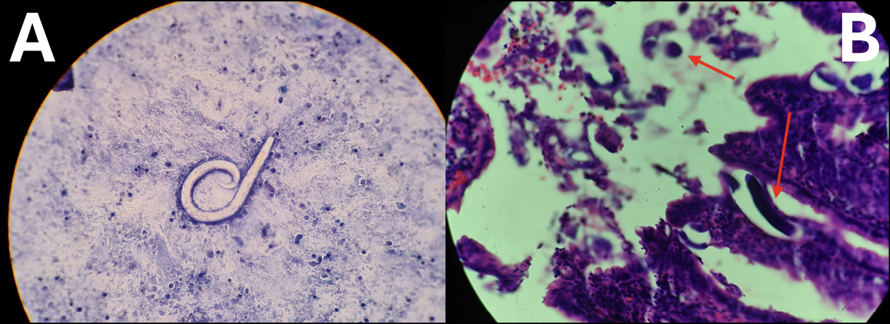 Strongyloides stercoralis (SS), commonly known as threadworm, is a soil-transmitted nematode belonging to the roundworm group [1]. The prevalence of SS varies by geographic region, exceeding 50% in tropical areas and ranging from 10% to 15% in other countries. Additionally, some studies have reported a slightly higher prevalence in women compared to men [2].
