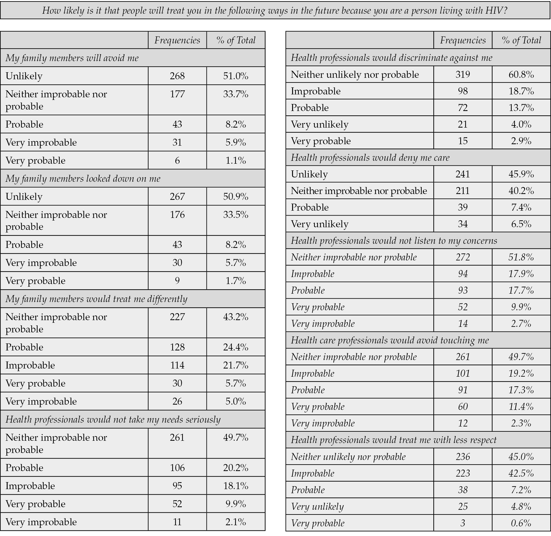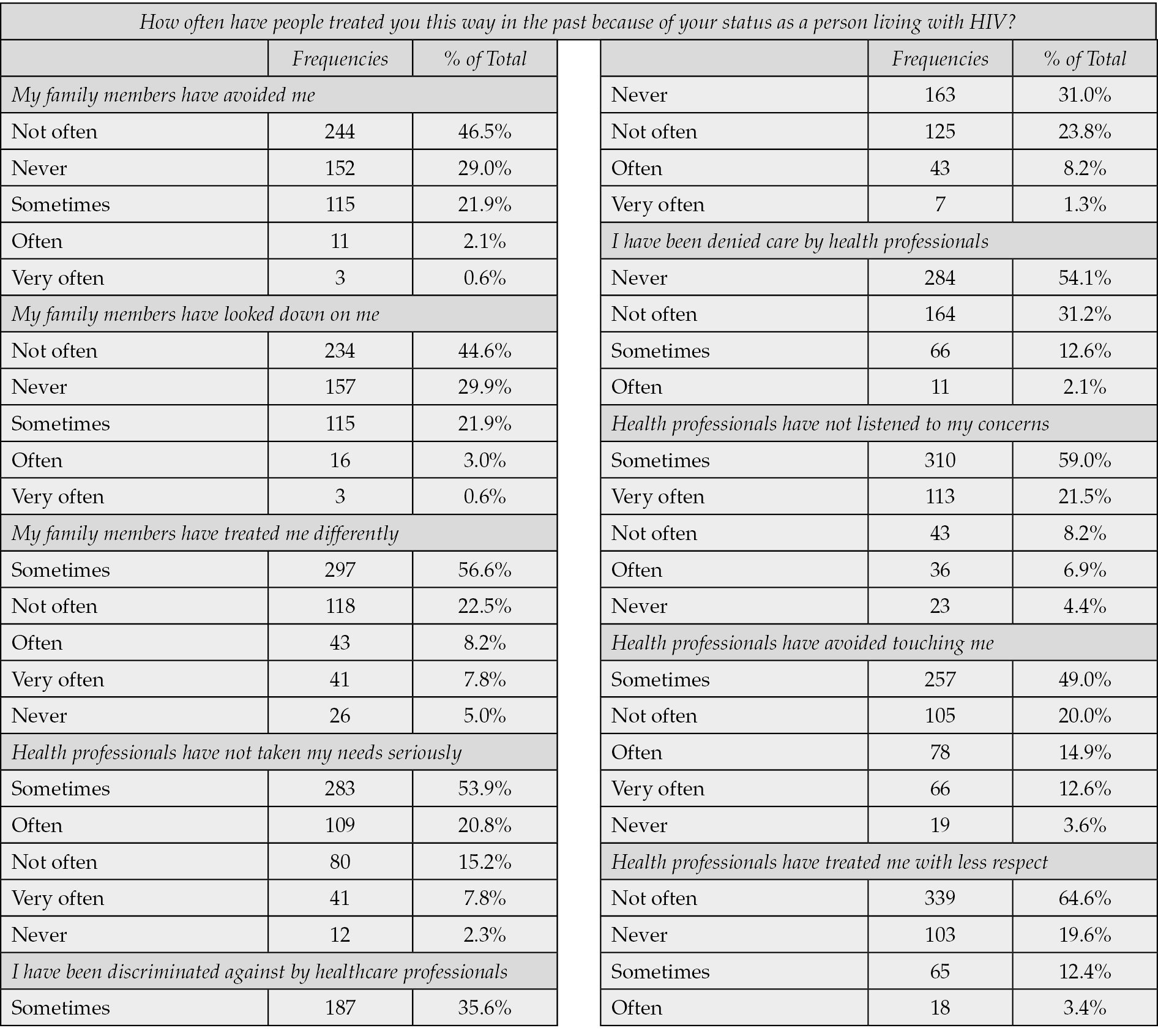 Table 4 - Experienced stigma.