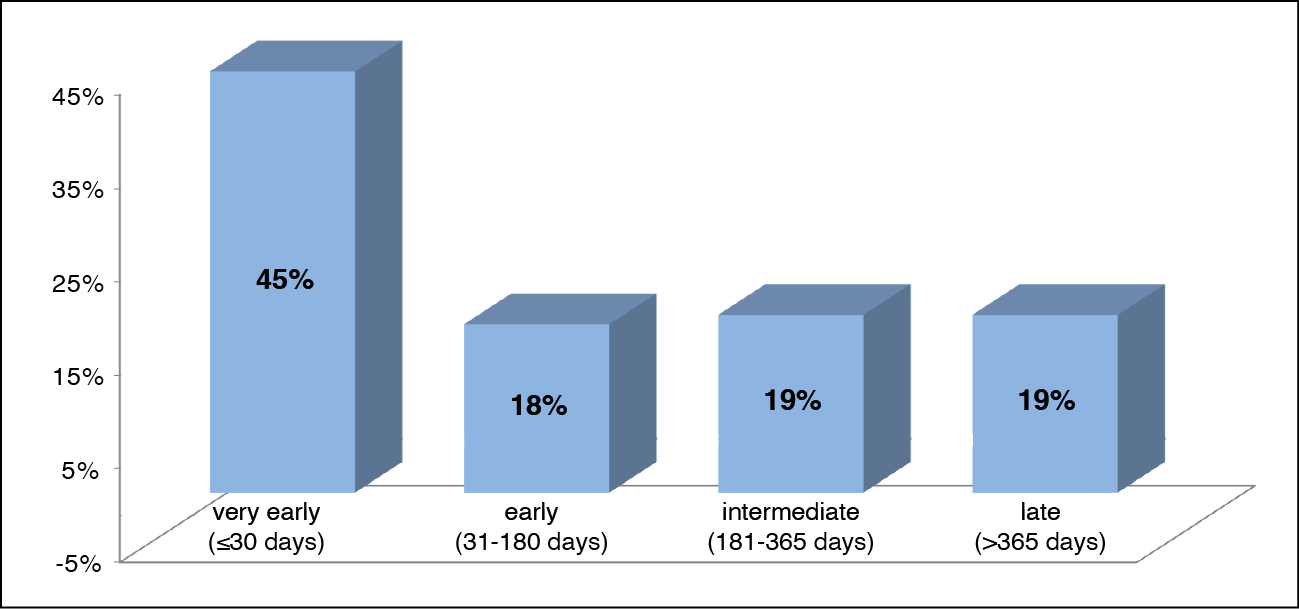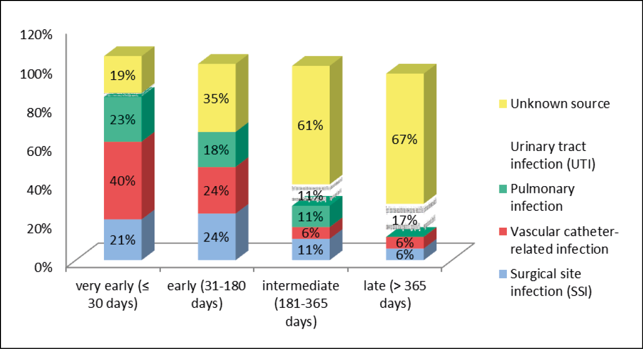 Figure 1B - Infectious source distribution based on post-surgical periods.