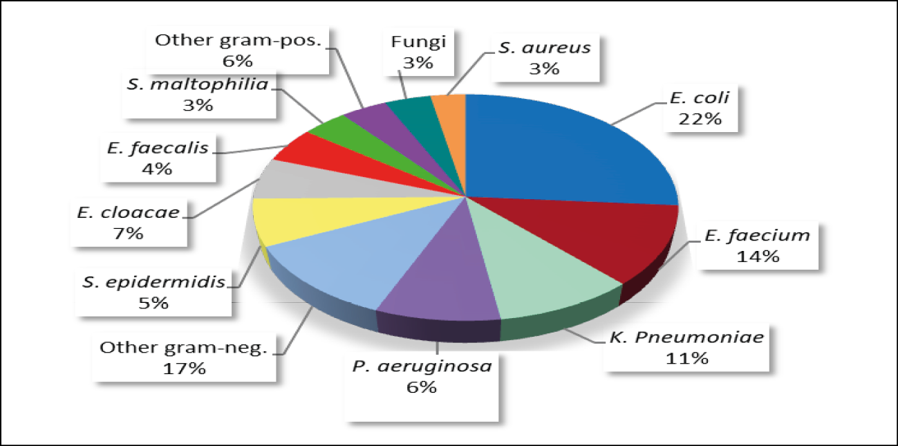 Enterobacterales members represented the vast majority of GNB, with the most common species being E. coli (22%) [1].