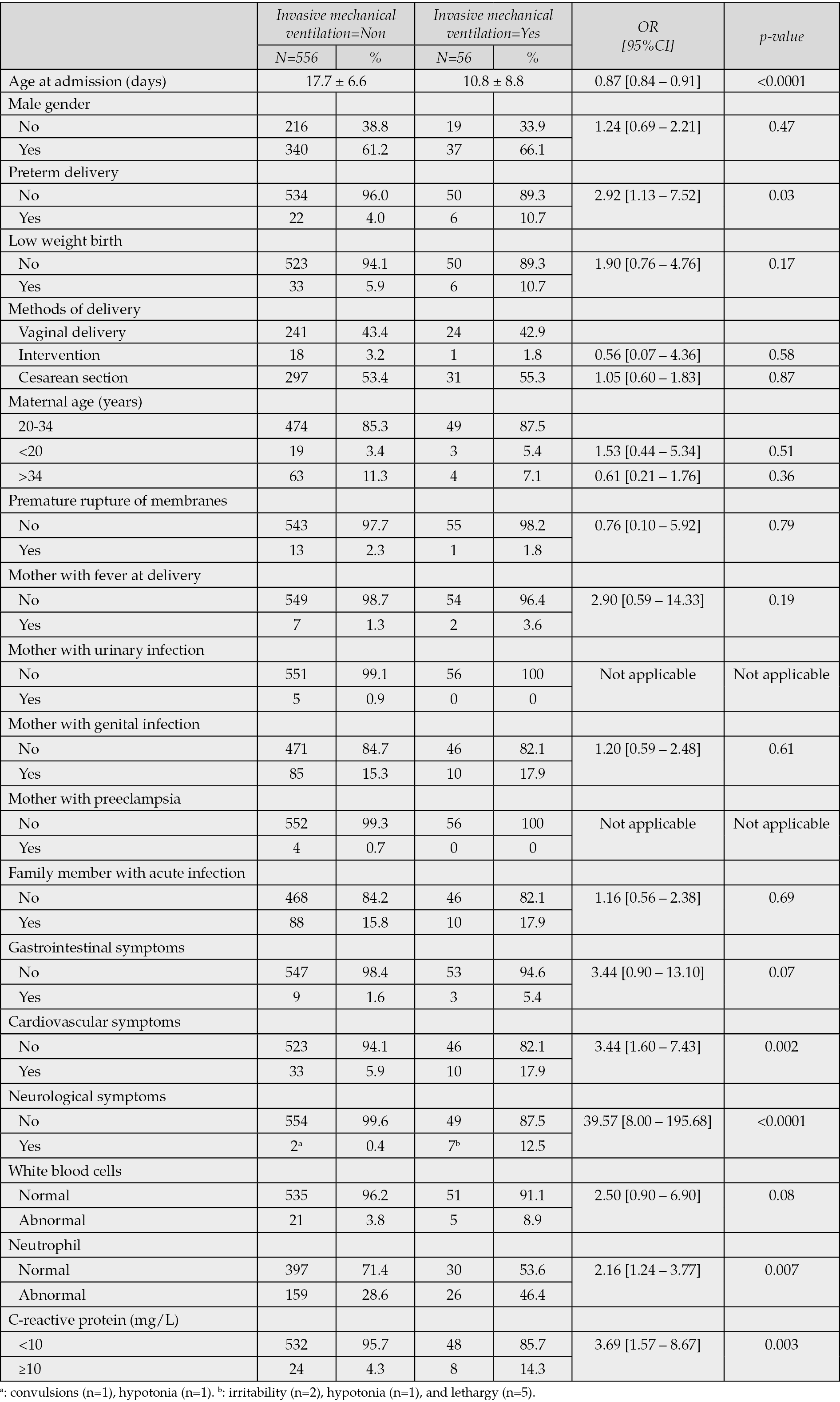 Table 4 - Risk factors of IMV (univariable analysis) (N=612).
